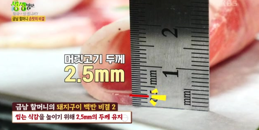 - 특별한 머릿고기의 식감은 얇게 썰어 구워 먹을 수 있도록 설계되어 있으며, 2.5mm 두께가 최적의 맛을 나타낸다고 합니다.